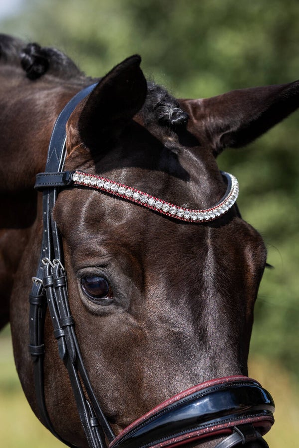 - Click&Go frontriem met prachtige zilver-donkerrood gekleurde kristallen. Het Hoofdstel wordt geleverd met extra losse strass-steentjes.