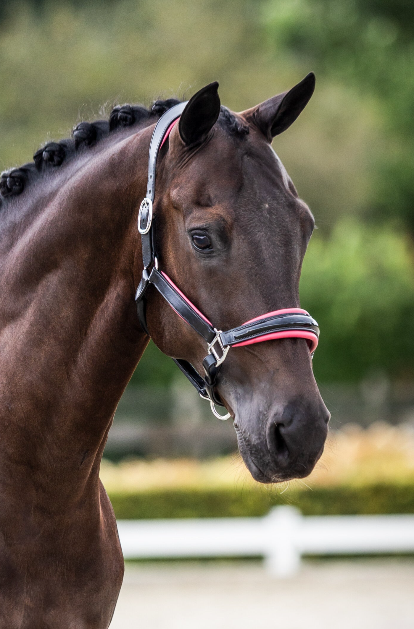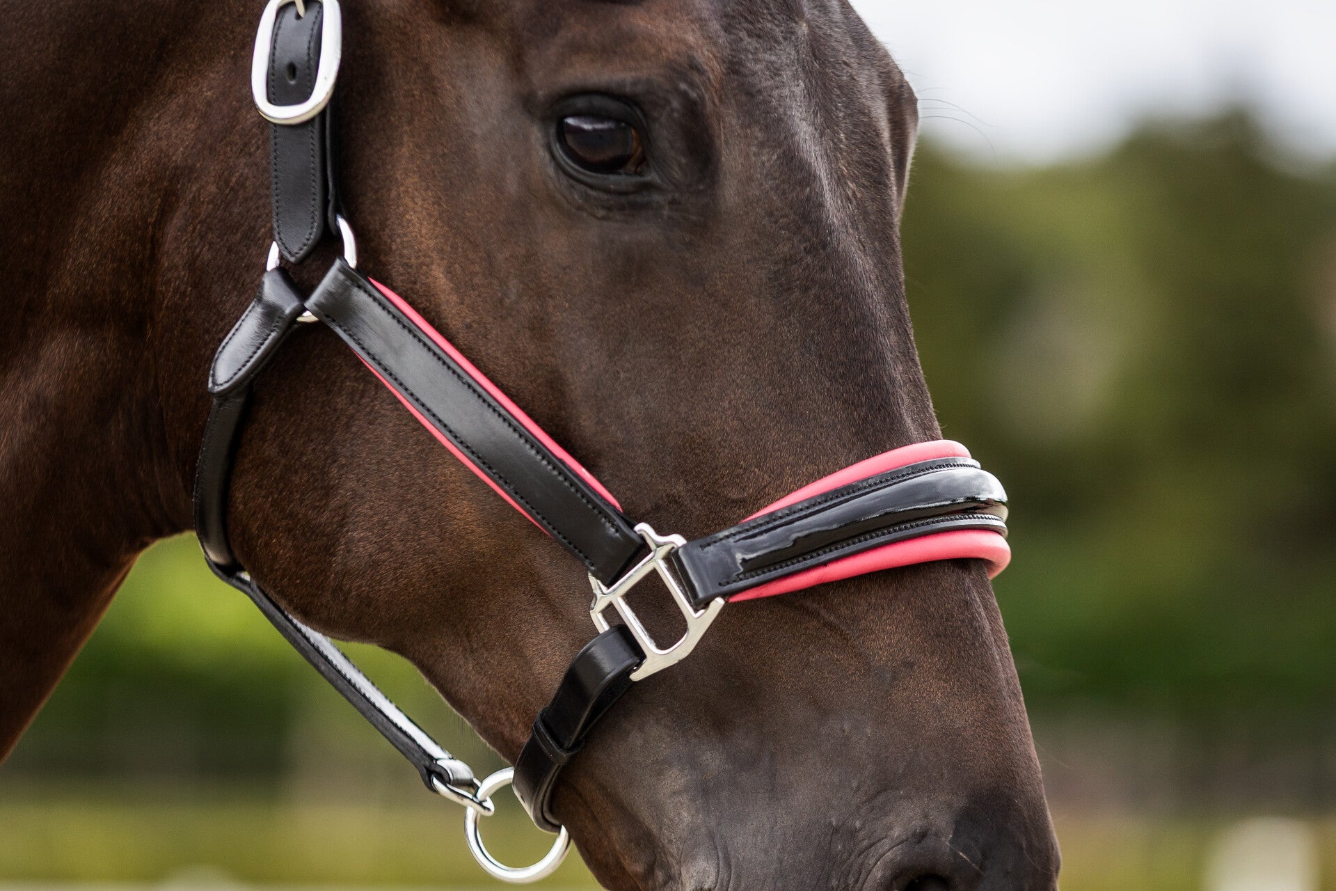 - Roze padding onder de neusriem, kopstuk en de bakstukken.