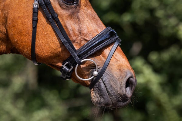 - Extra zacht onderlegd, zowel onder de neusriem als onder het kopstuk.