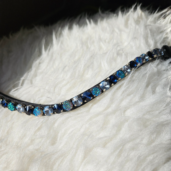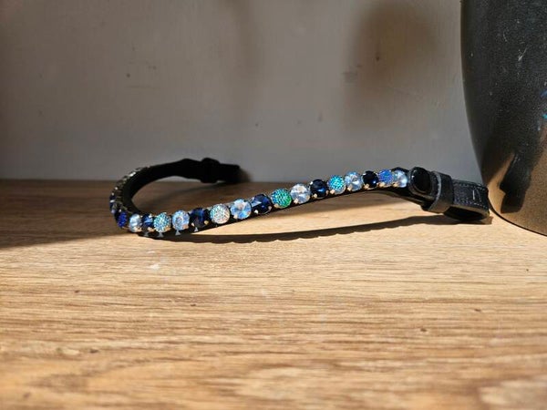 Deze prachtige wave frontriem is ideaal om je hoofdstel net iets extra's te geven. De frontriem heeft hoogkwaliteit grote blauwe strass stenen.