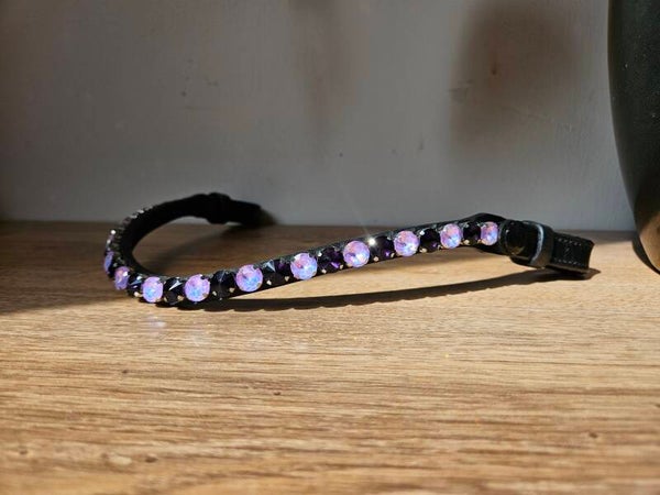 Deze prachtige wave frontriem is ideaal om je hoofdstel net iets extra's te geven. De frontriem heeft hoogkwaliteit grote paarse strass stenen.