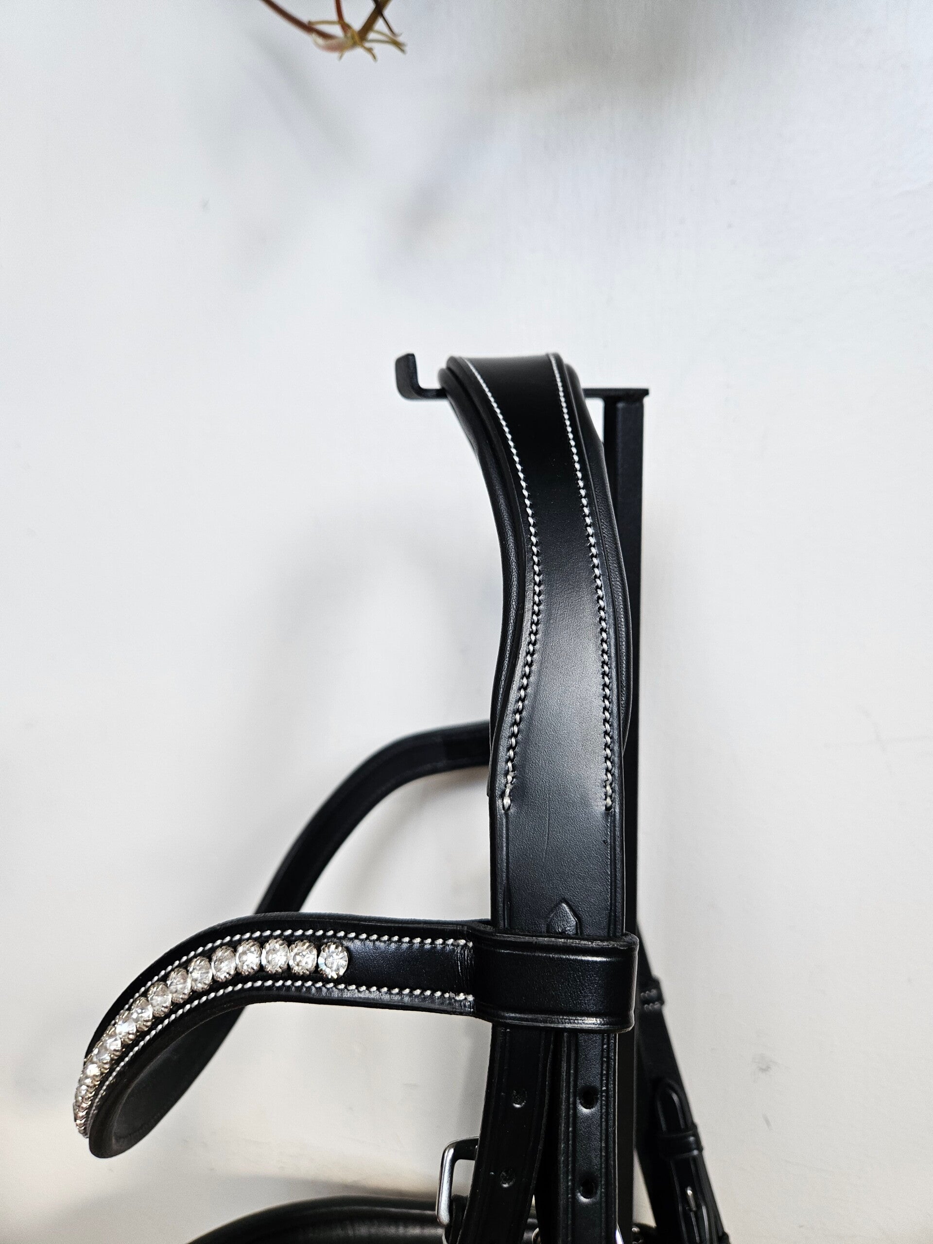 Het hoofdstel bezit aan beide kanten van het hoofd gespen om de neusriem, keelriem en bakstukken te verstellen.